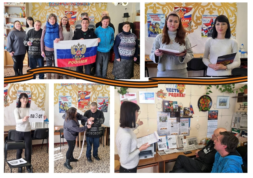 В начале мероприятия сотрудники библиотеки рассказали о героизме и мужестве воинов России, о силе и славе русского оружия, которые всегда были неотъемлемой частью величия нашего государства. Особый акцент был сделан на том, что 2025 год был объявлен президентом В.В. Путиным Годом защитника Отечества. Это решение имеет особую символическую значимость, так как совпадает с празднованием 80-летия Победы в Великой Отечественной войне. Присутствующие выразили искреннюю благодарность тем, кто защищал и продолжает защищать суверенитет и безопасность нашей страны. В ходе встречи звучали стихи и песни, посвященные воинам и героям Отечества.