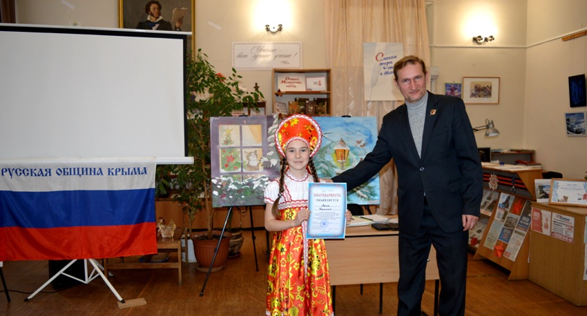 Всем участникам были вручены благодарности директора МБУК «ЦБС для взрослых» Евгении Никоновой и председателя Симферопольской городской организации Русской общины Крыма Максима Кутяева за участие в итоговой годовой творческой встрече Крымского культурного общества «Таврика» и личный вклад в дело развития культуры в Крыму.