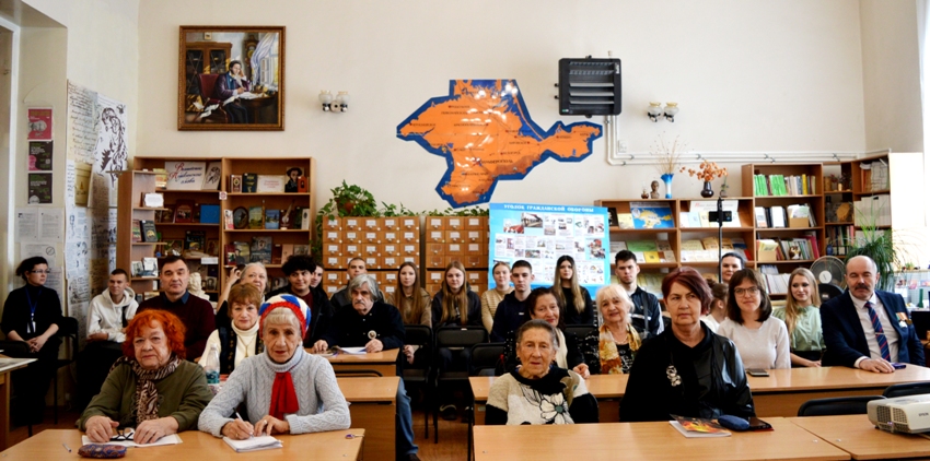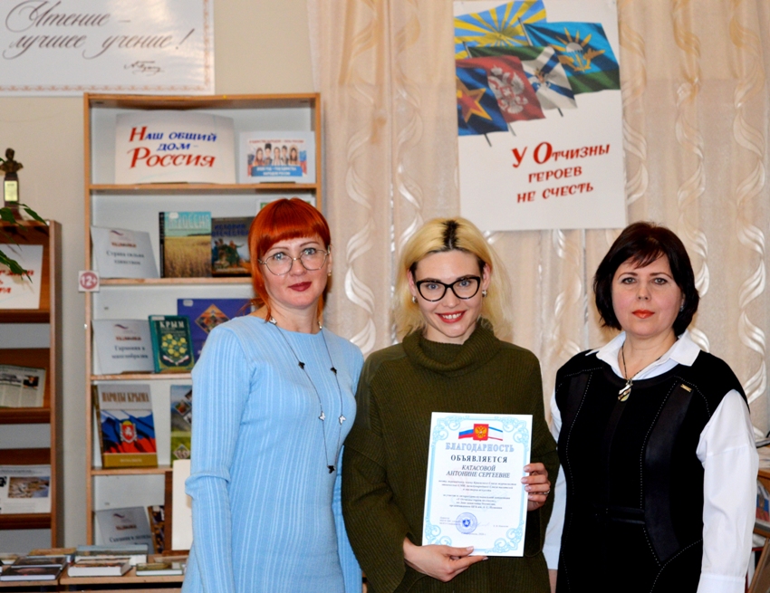 20 февраля в читальном зале ЦГБ им. А. С. Пушкина для студентов Симферопольского техникума железнодорожного транспорта и промышленности, читателей и гостей состоялась литературно-музыкальная композиция «У Отчизны героев не счесть», ко Дню защитника Отечества.