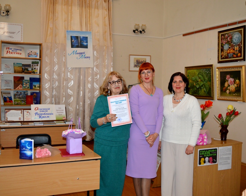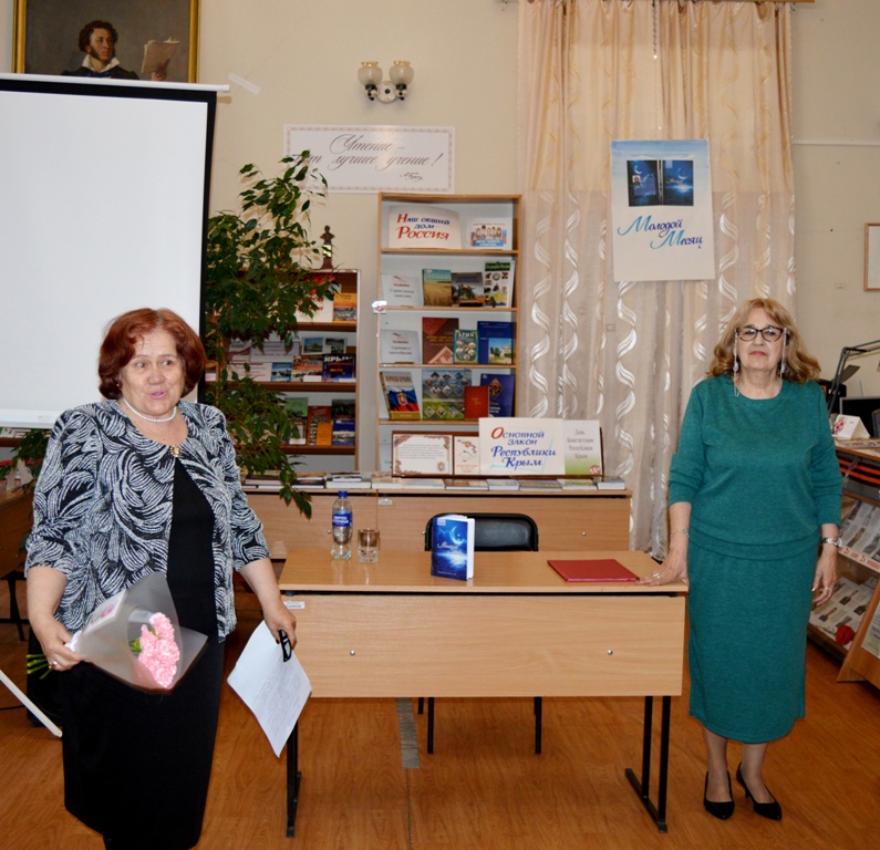 28 апреля в читальном зале Центральной городской библиотеки имени А. С. Пушкина прошла встреча, посвящённая презентации новой книги крымского автора Венеры Рябчиковой (Юлдуз) «Молодой Месяц». Мероприятие было организовано для студентов Крымского филиала Российского государственного университета правосудия, а также для читателей и гостей библиотеки.